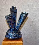 2015Op verzoek van een galeriste, twee vazen gemaakt welke op een schilderij van mijn echtgenote staan afgebeeld teneinde ze samen te exposeren. https://www.catharina-van-ameijde.nl/ Vaas Z # Sold # bij schilderij Sunflowers in a Vase